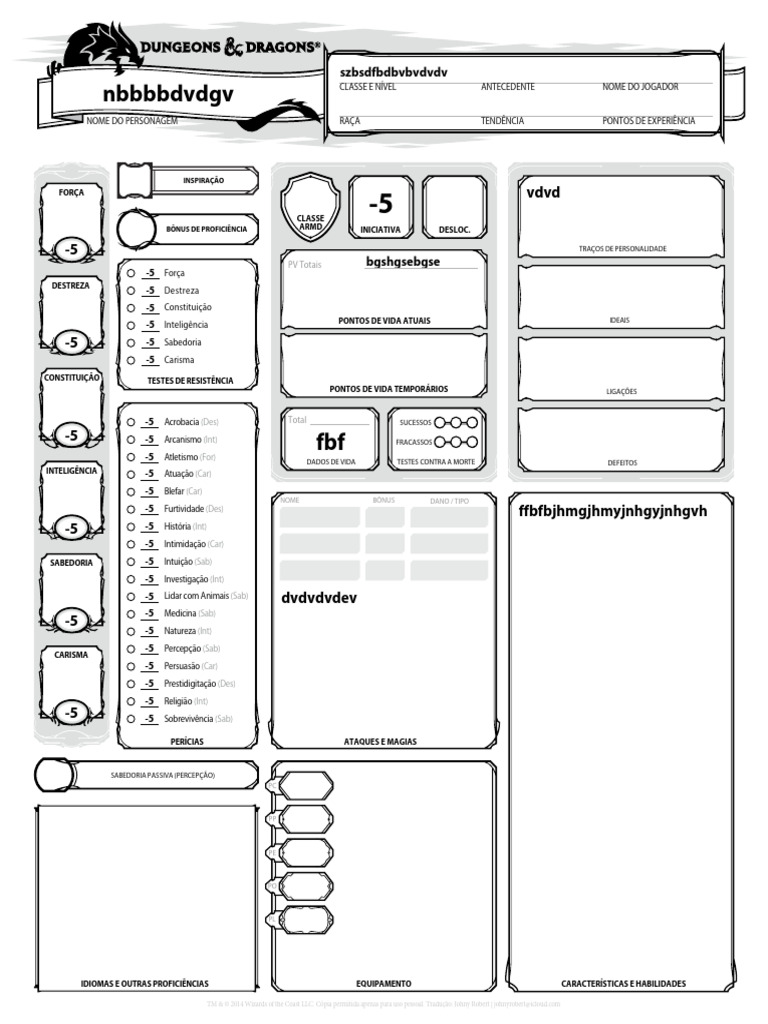 NOME DO PERSONAGEM RAÇA TENDÊNCIA PONTOS DE EXPERIÊNCIA