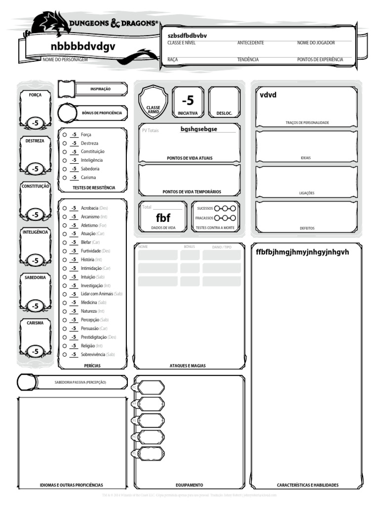 NOME DO PERSONAGEM RAÇA TENDÊNCIA PONTOS DE EXPERIÊNCIA