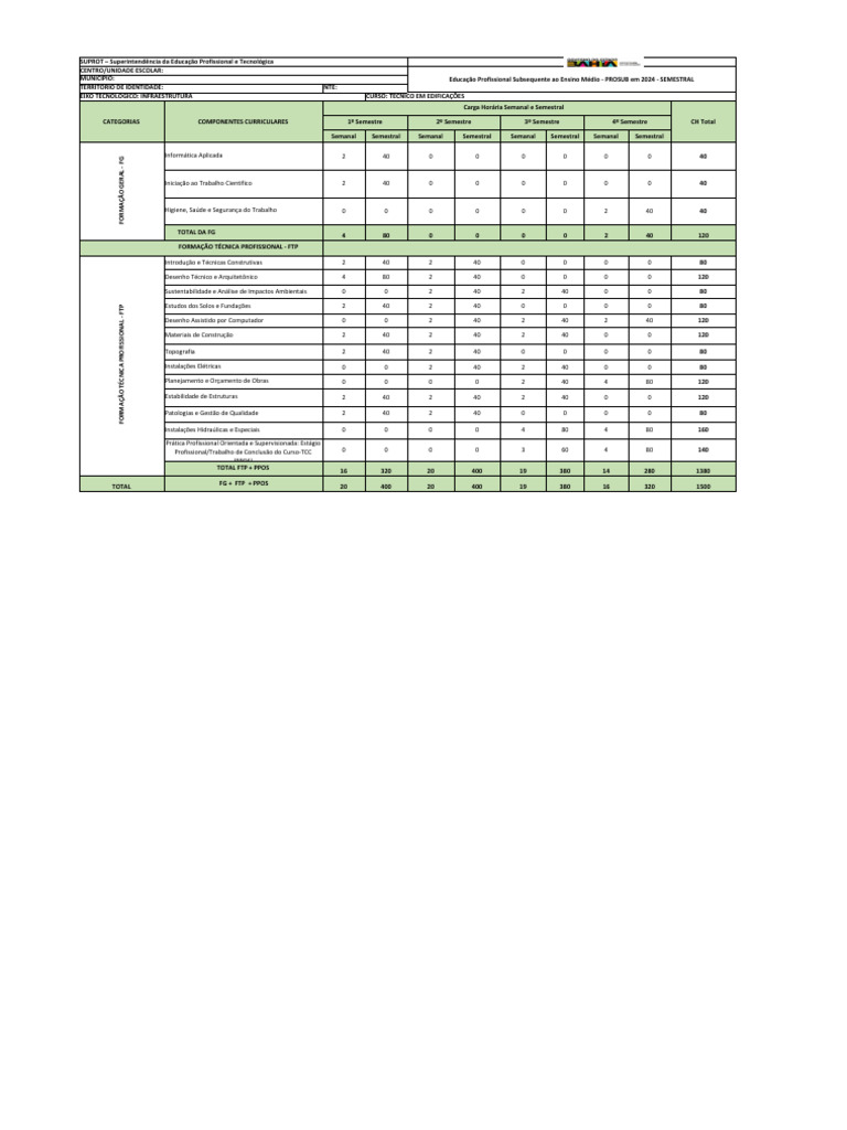 MUNICÍPIO: Educação Profissional Subsequente ao Ensino Médio - PROSUB em 2024 - SEMESTRAL