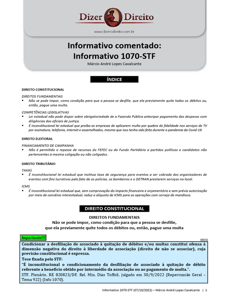 O Informativo comentado do Dizer o Direito tem por objetivo apenas explicar e sistematizar esses julgados.
