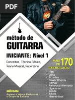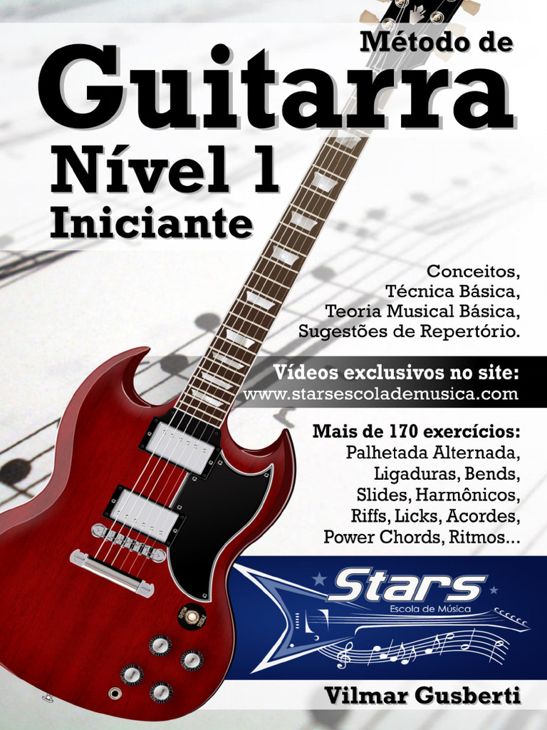 acordes básicos, até as principais técnicas como palhetada alternada, ligaduras, bends, slides,
