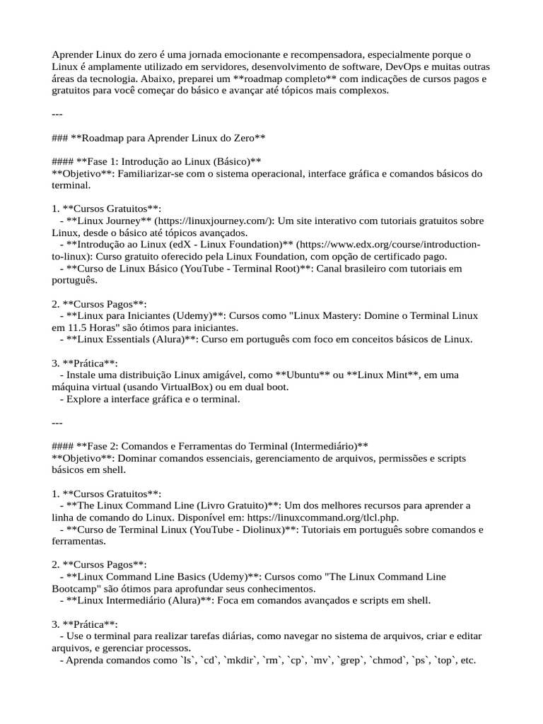 Seguindo este roadmap, você passará de iniciante a um usuário avançado de Linux, com habilidades