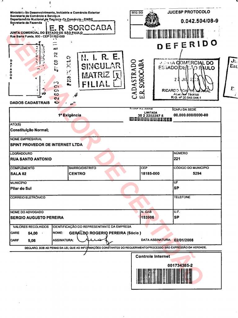 Constituição da SPINT Provedor de Internet