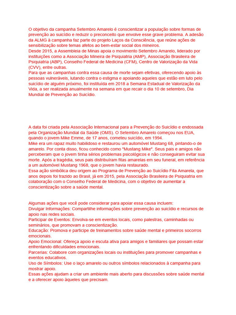 pela Organização Mundial da Saúde (OMS). O Setembro Amarelo começou nos EUA,