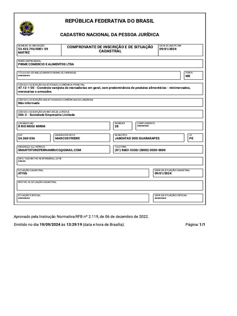 Emitido no dia 19/09/2024 às [Link] (data e hora de Brasília). Página: 1/1