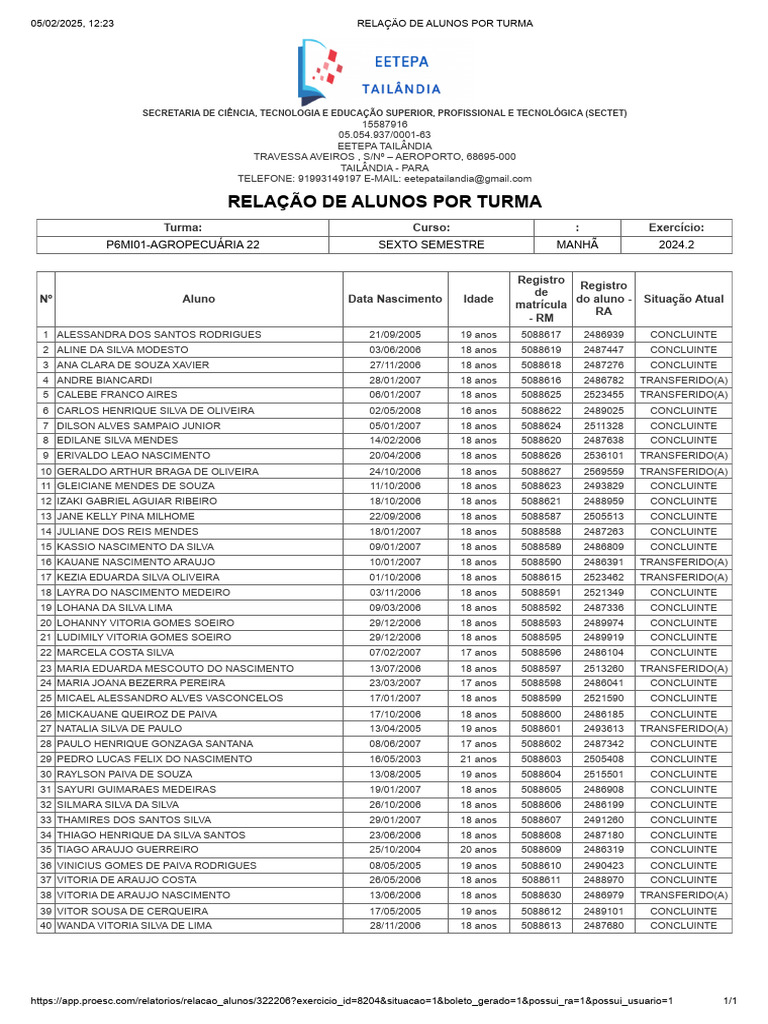05/02/2025, 12:23 RELAÇÃO DE ALUNOS POR TURMA