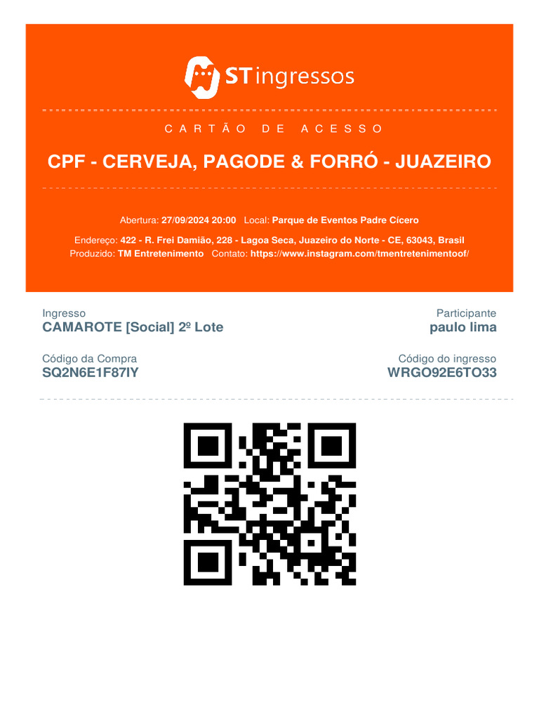 compra do ingresso e na entrada do evento. Caso exista suspeita de fraude no seu ingresso o mesmo poderá