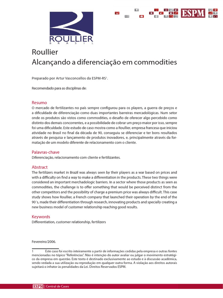 Diferenciação, relacionamento com cliente e fertilizantes.