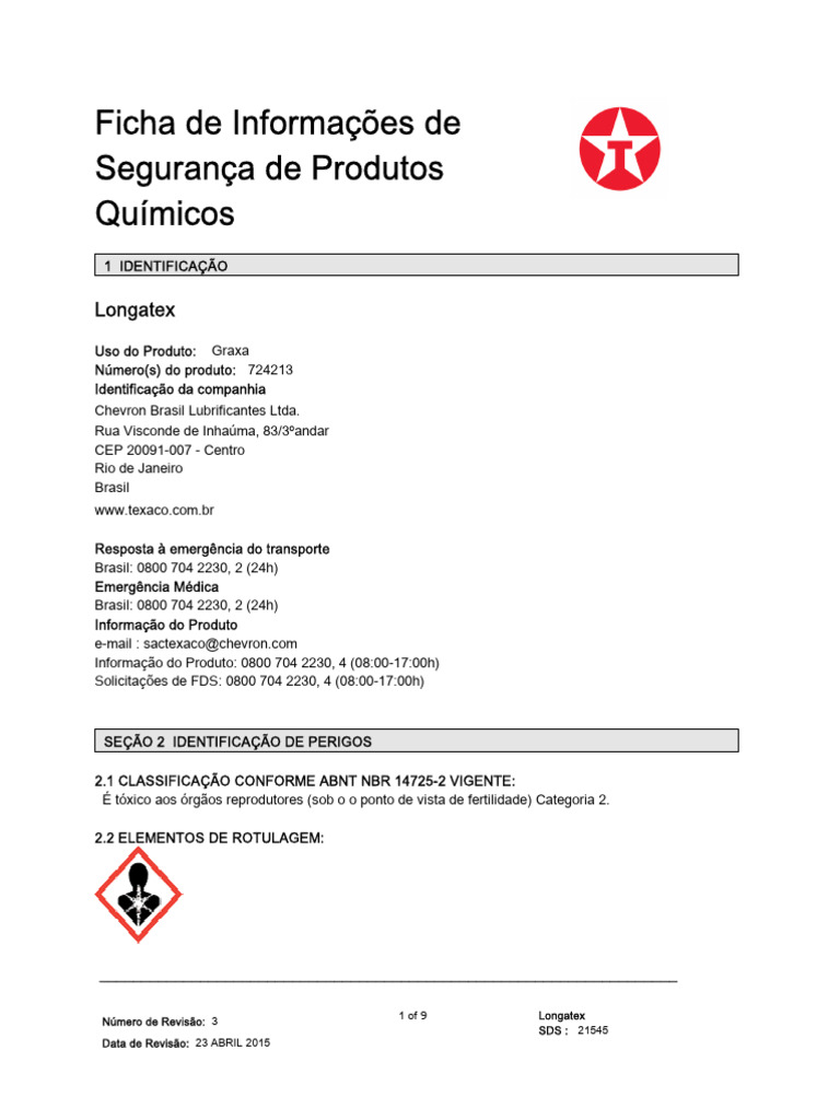 Ficha de Informações de Segurança de Produtos Químicos (FISPQ): 3