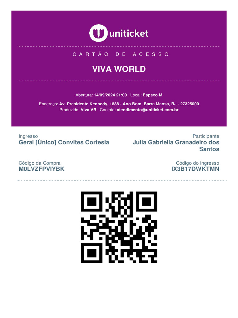 Produzido: Viva VR Contato: atendimento@uniticket.com.br