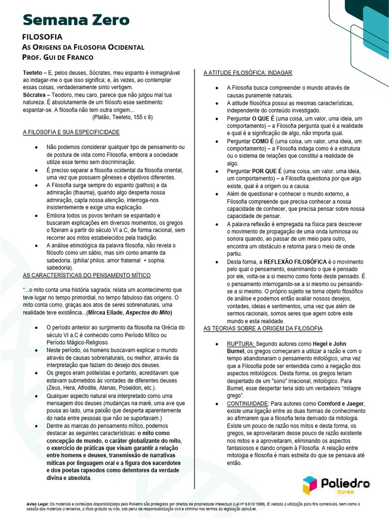 Pensadores”.) ORIENTAÇÃO DE ESTUDOS DETALHADA PARA ESTA AULA: