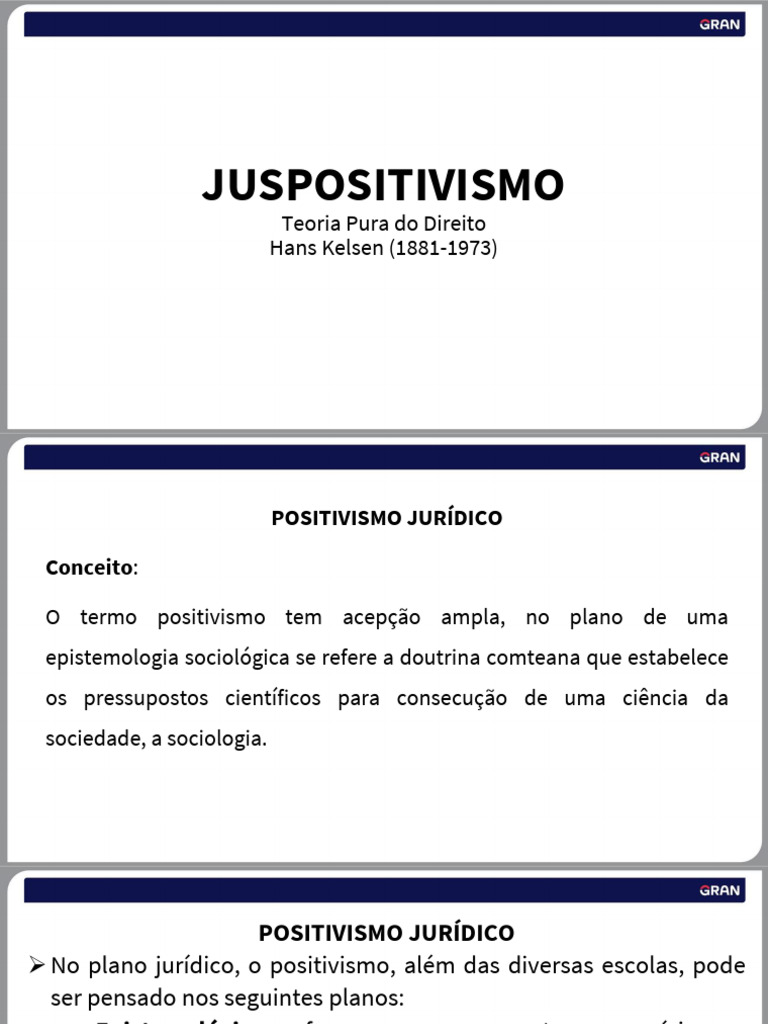 ➢ No plano jurídico, o positivismo, além das diversas escolas, pode