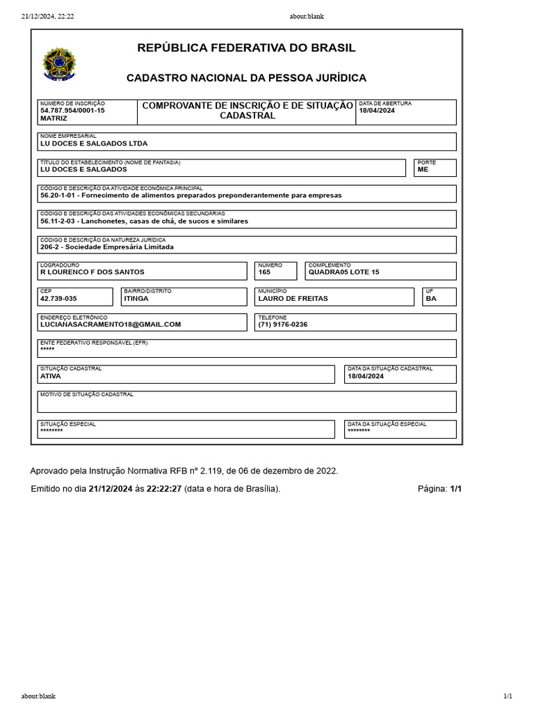 Emitido no dia 21/12/2024 às [Link] (data e hora de Brasília). Página: 1/1