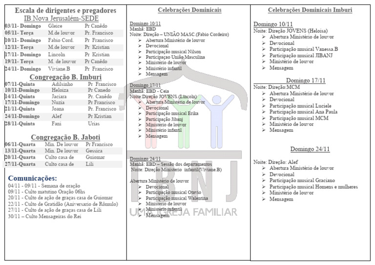 Escala de dirigentes e pregadores Celebrações Dominicais Celebrações Dominicais Imburi