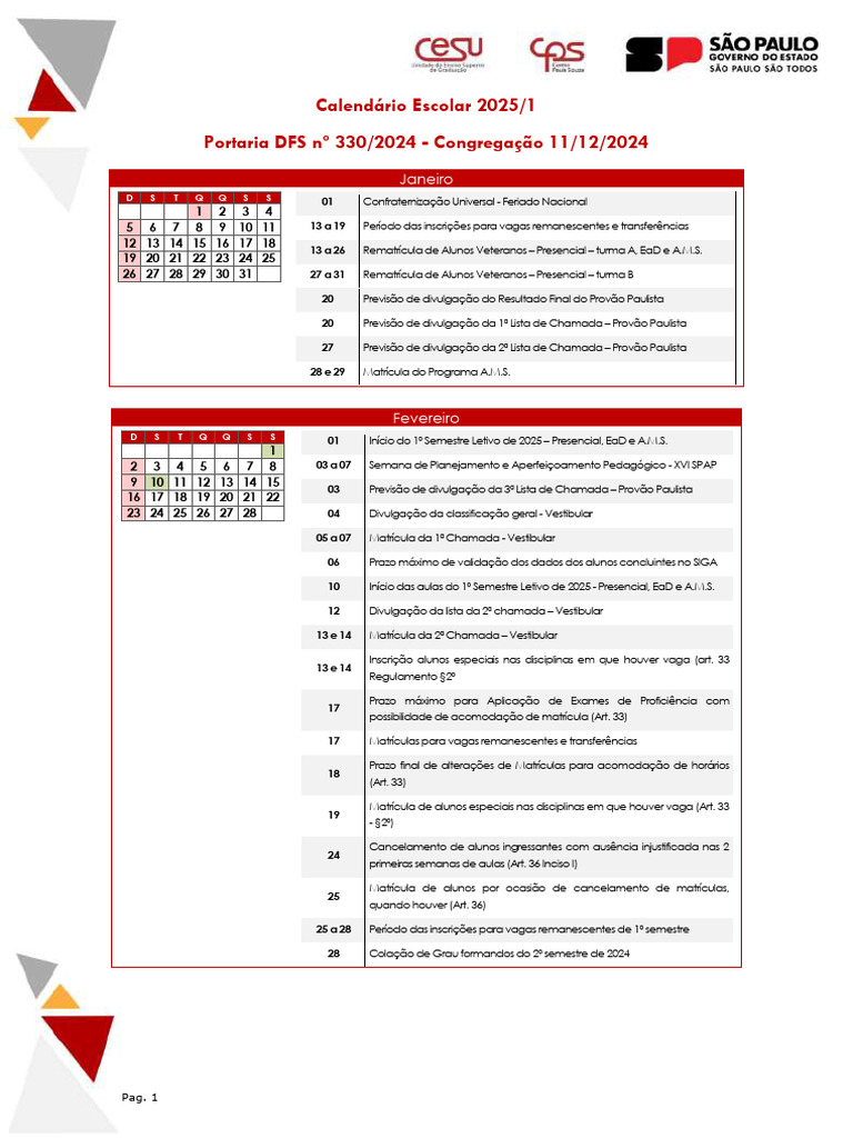 Calendário Escolar 2025/1