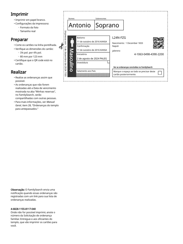 • Corte os cartões na linha pontilhada. Confirmação Napoli