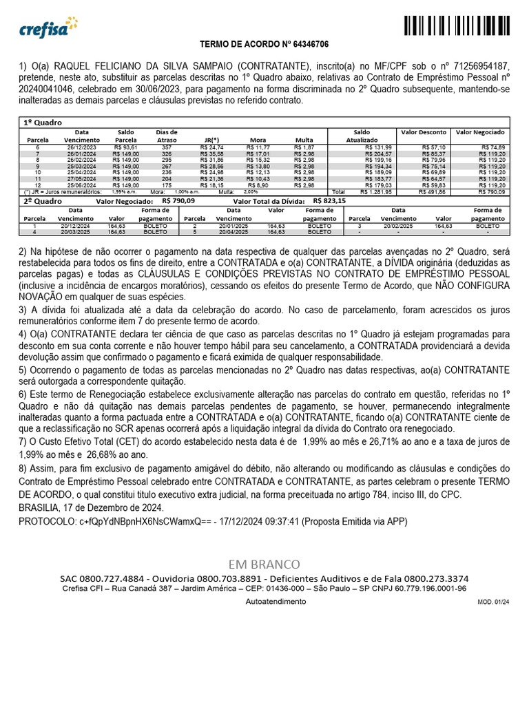 2º Quadro Valor Negociado: R$ 790,09 Valor Total da Dívida: R$ 823,15