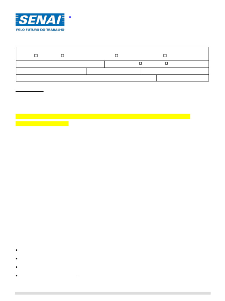 INSTRUTOR(A): MODALIDADE: ☐TÉCNICO ☐APRENDIZAGEM