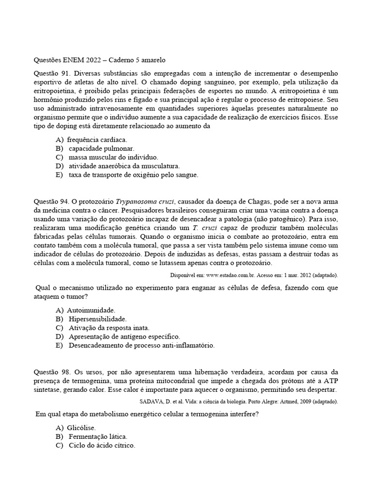Questões ENEM 2022 – Caderno 5 amarelo