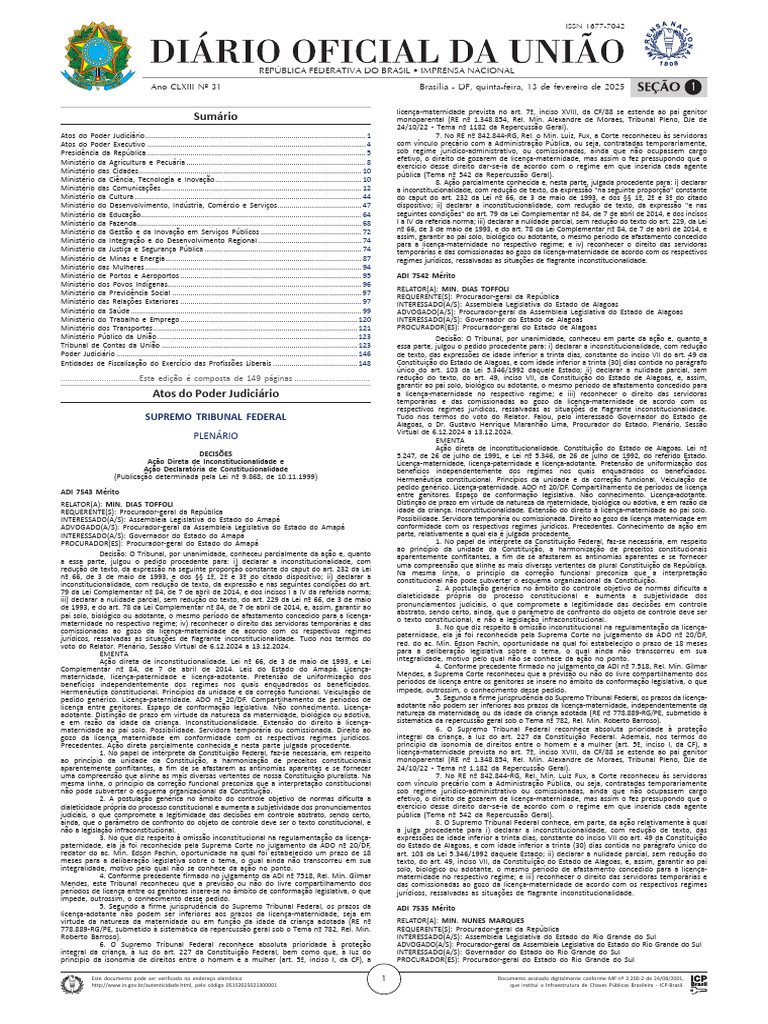 Seção 1 ISSN 1677-7042 Nº 31, quinta-feira, 13 de fevereiro de 2025
