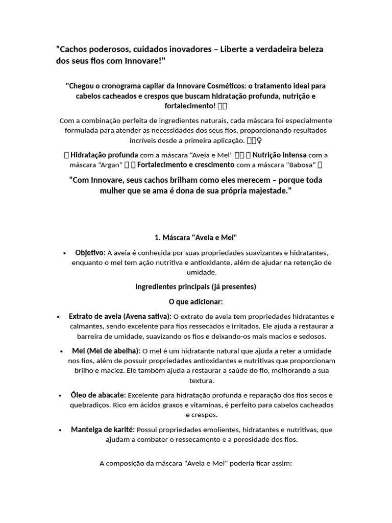 cacheados e crespos. Além disso, ele contém vitaminas e aminoácidos