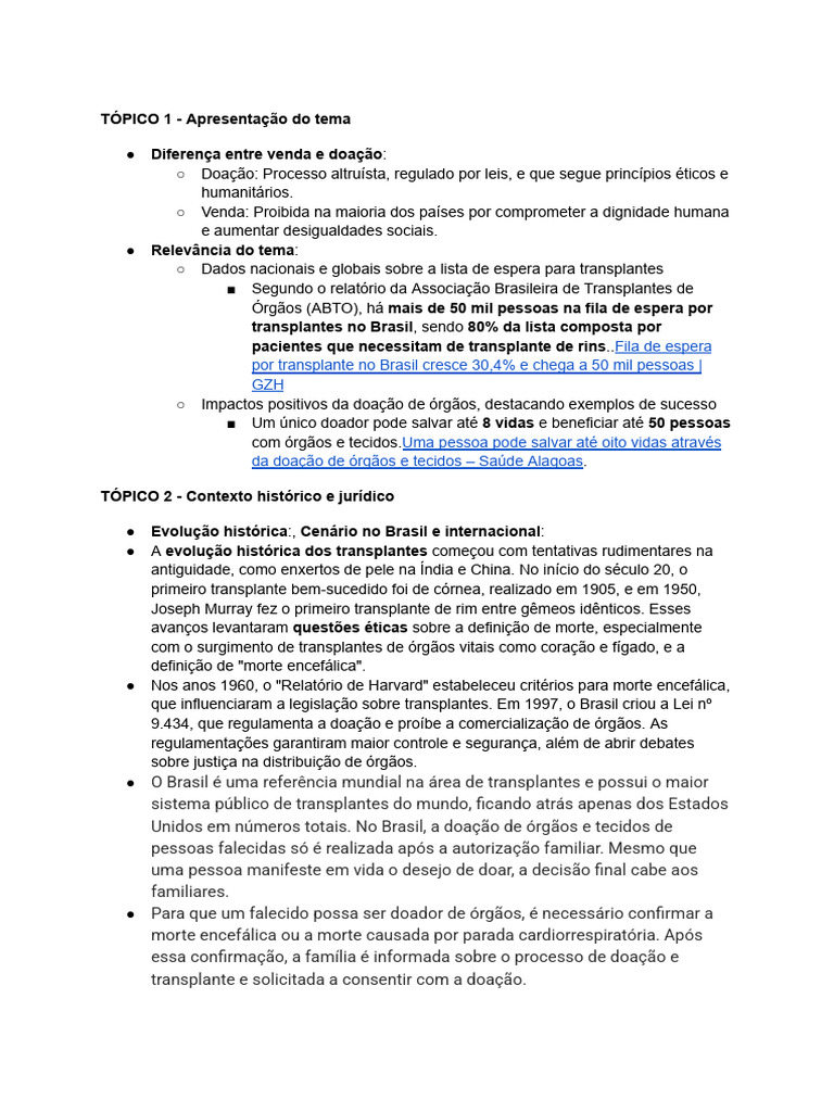 TÓPICO 7 - Discussão ética sobre a legalização da venda de órgãos