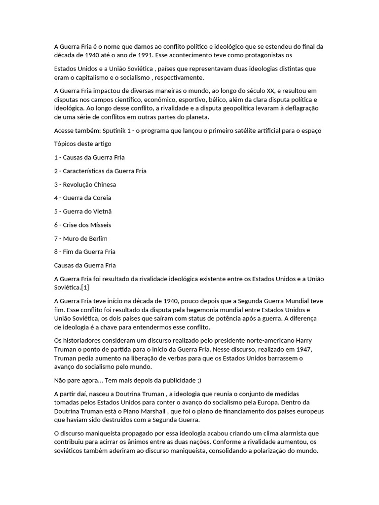 fim. Esse conflito foi resultado da disputa pela hegemonia mundial entre Estados Unidos e
