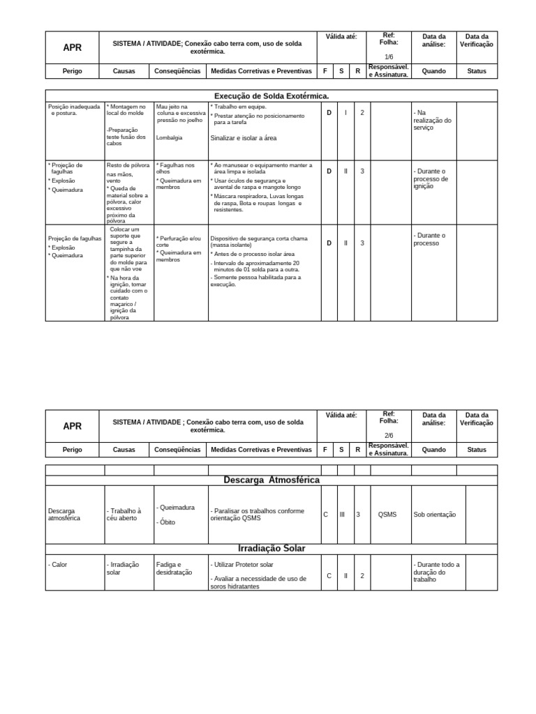 - Repassar as informações contidas nesta APR, obrigatoriamente a todos os executantes, antes do início dos trabalhos;