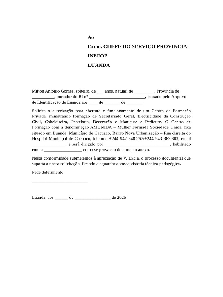 Luanda, aos ______ de ________________ de 2025