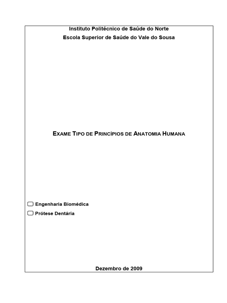 EXAME TIPO DE PRINCÍPIOS DE ANATOMIA HUMANA