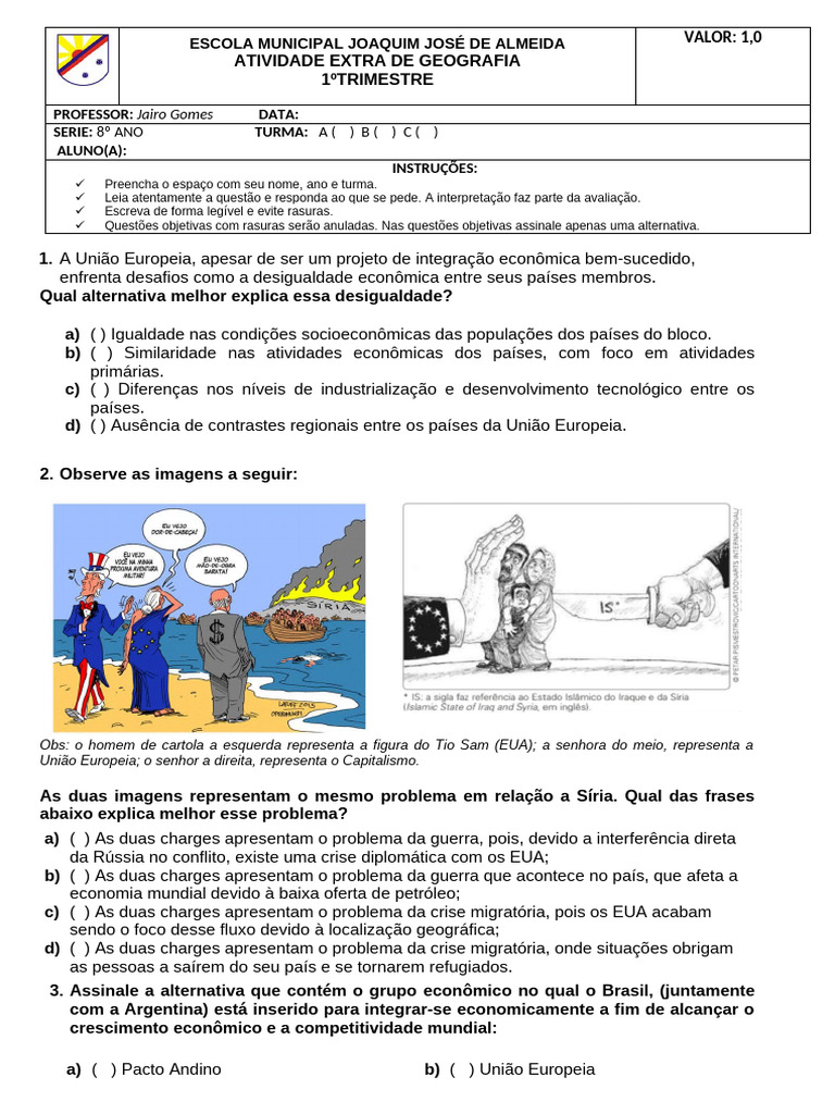 ESCOLA MUNICIPAL JOAQUIM JOSÉ DE ALMEIDA VALOR: 1,0