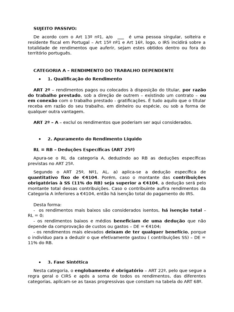 regra geral o CIRS e após a soma de todos os rendimentos, das diferentes