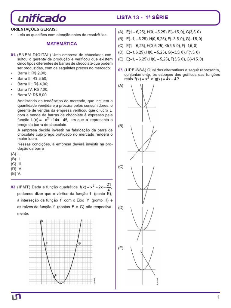 MATEMÁTICA (C) E(1, − 6,25), H(0, 5,25), G(3,5, 0), F( −1,5, 0)
