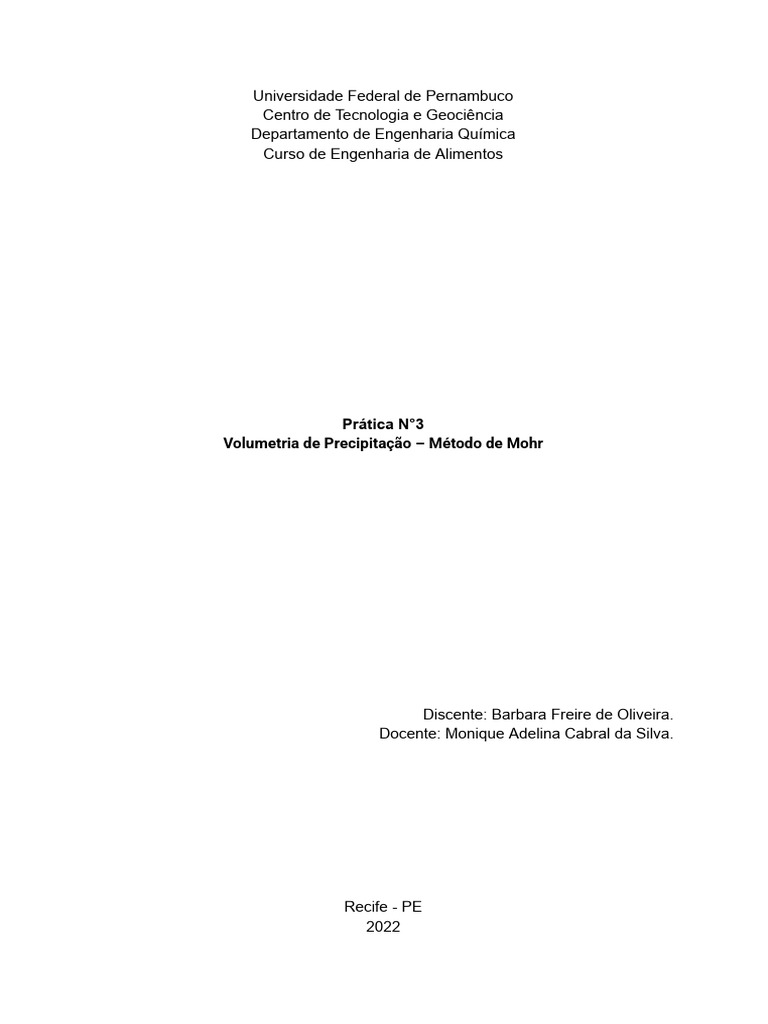 engenharia de alimento por volumetria de precipitação utilizando o Método de Mohr.
