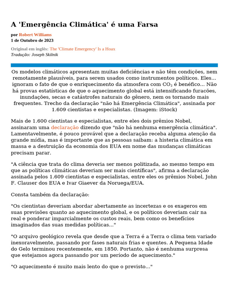 Original em inglês: The 'Climate Emergency' Is a Hoax