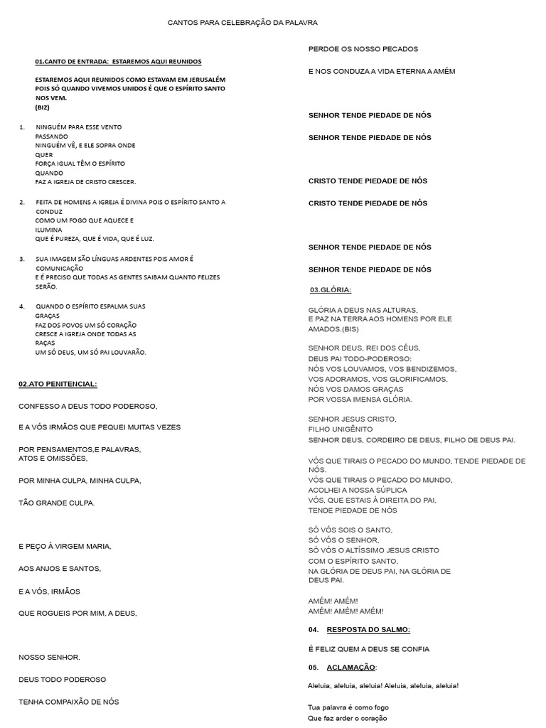 CANTOS PARA CELEBRAÇÃO DA PALAVRA