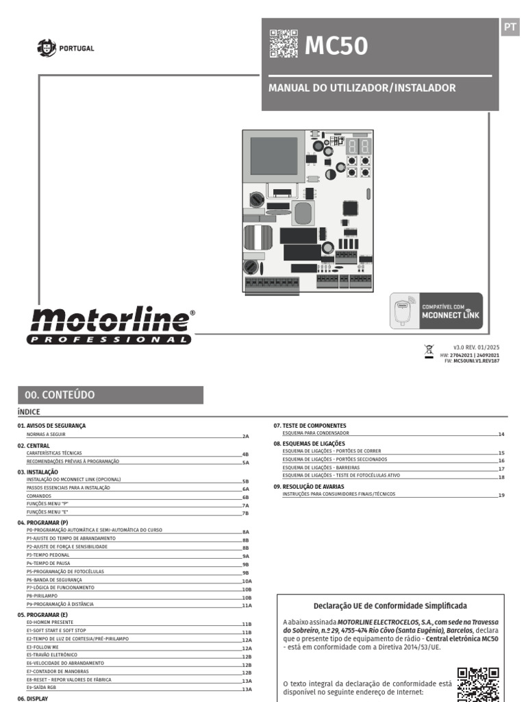 no portão. facilmente? especializado fazendo teste com condensador do condensador, desligue o pág 14). técnicos MOTORLINE para