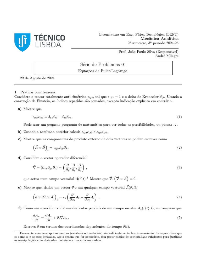 d) Use (37) e o Problema 1 para obter a força de Laplace-Lorentz em (33).