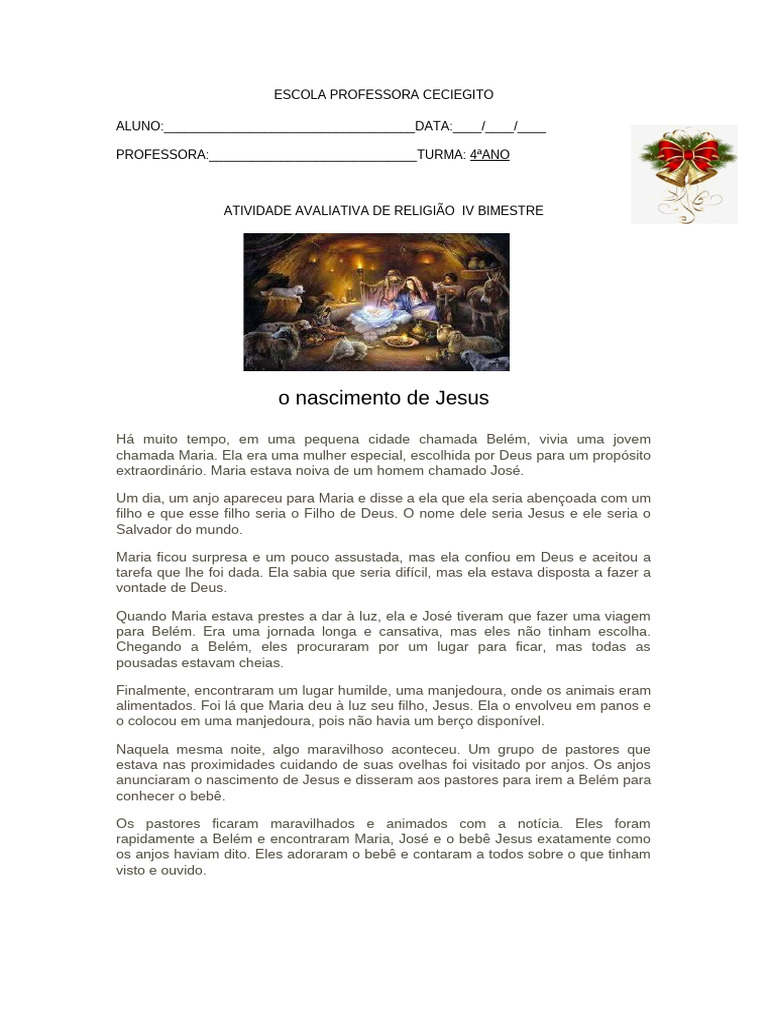 alimentados. Foi lá que Maria deu à luz seu filho, Jesus. Ela o envolveu em panos e