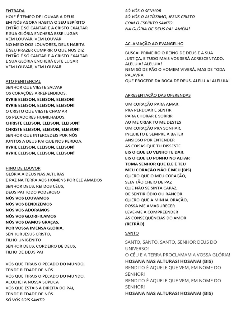 FILHO UNIGÊNITO SANTO, SANTO, SANTO, SENHOR DEUS DO