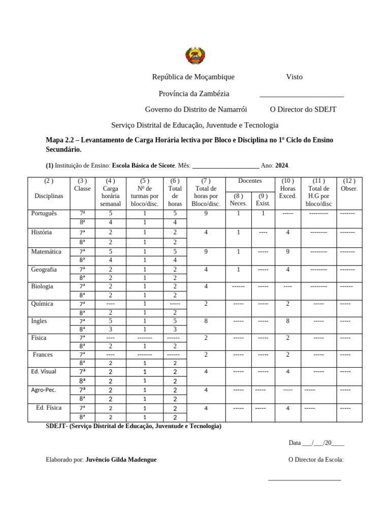 Elaborado por: Juvêncio Gilda Madengue O Director da Escola: