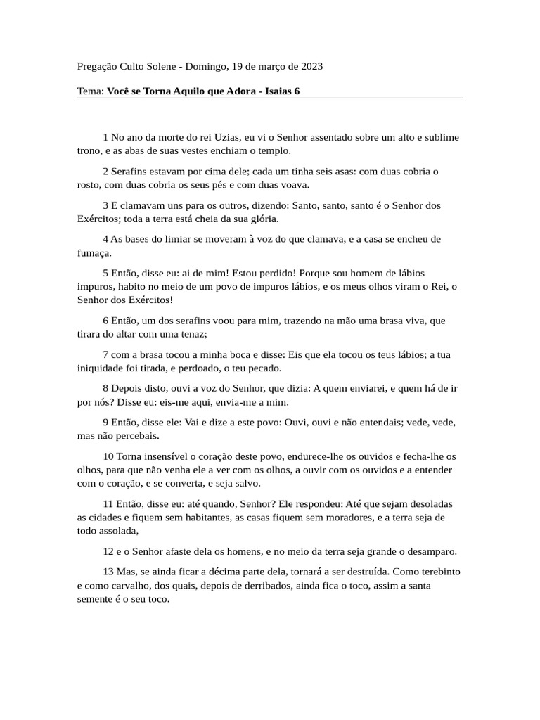 Tema: Você se Torna Aquilo que Adora - Isaias 6