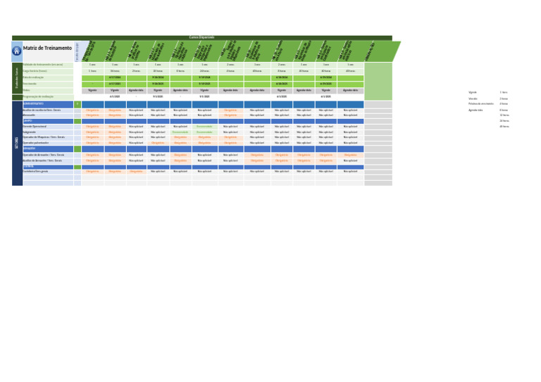 Gerente Operacional Obrigatório Obrigatório Não aplicável Não aplicável Não aplicável Recomendado Não aplicável Não aplicável Não aplicável Não aplicável Não aplicável Não aplicável 40 horas
