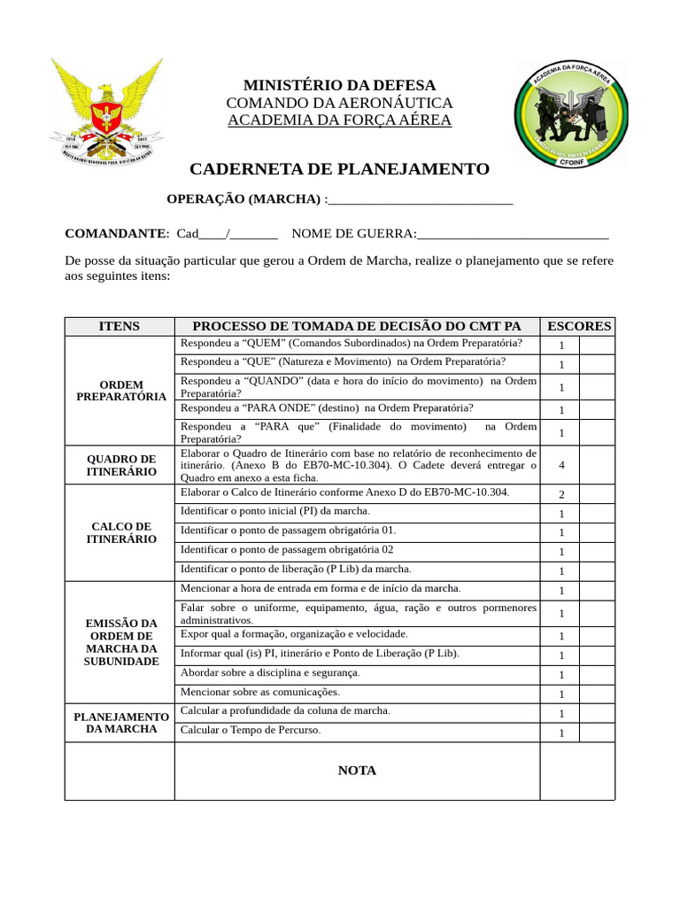 COMANDANTE: Cad____/_______ NOME DE GUERRA:____________________________
