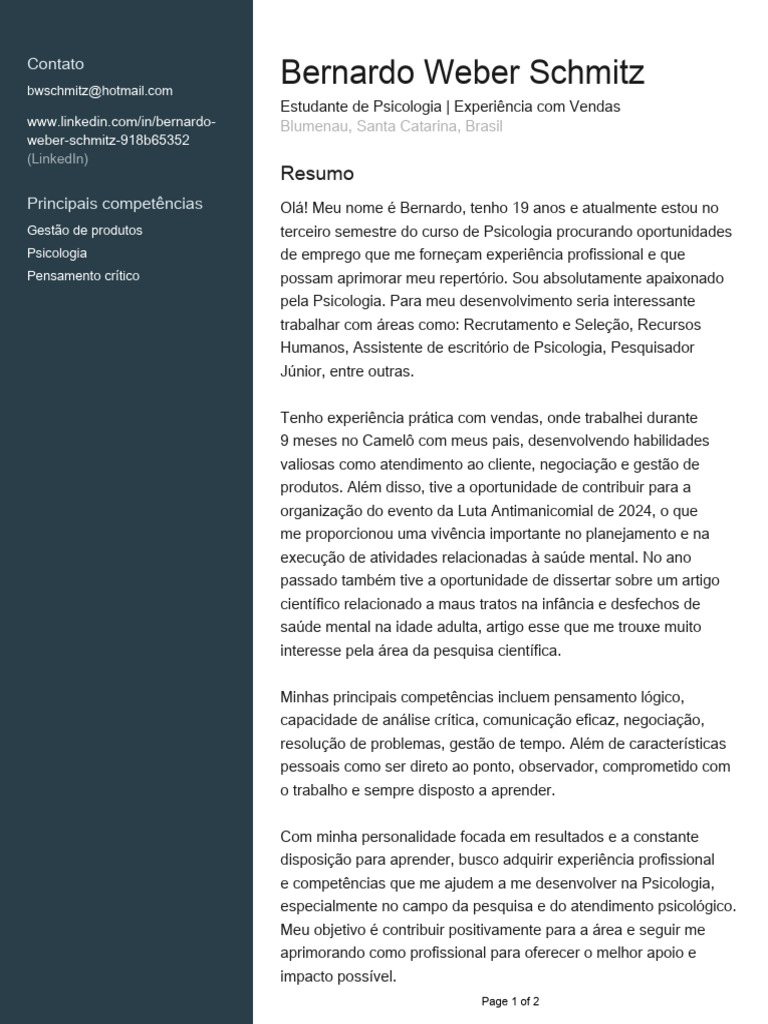 [Link]/in/bernardo- Blumenau, Santa Catarina, Brasil