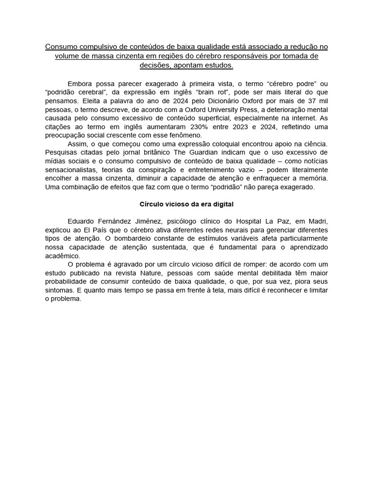 “podridão cerebral”, da expressão em inglês “brain rot”, pode ser mais literal do que