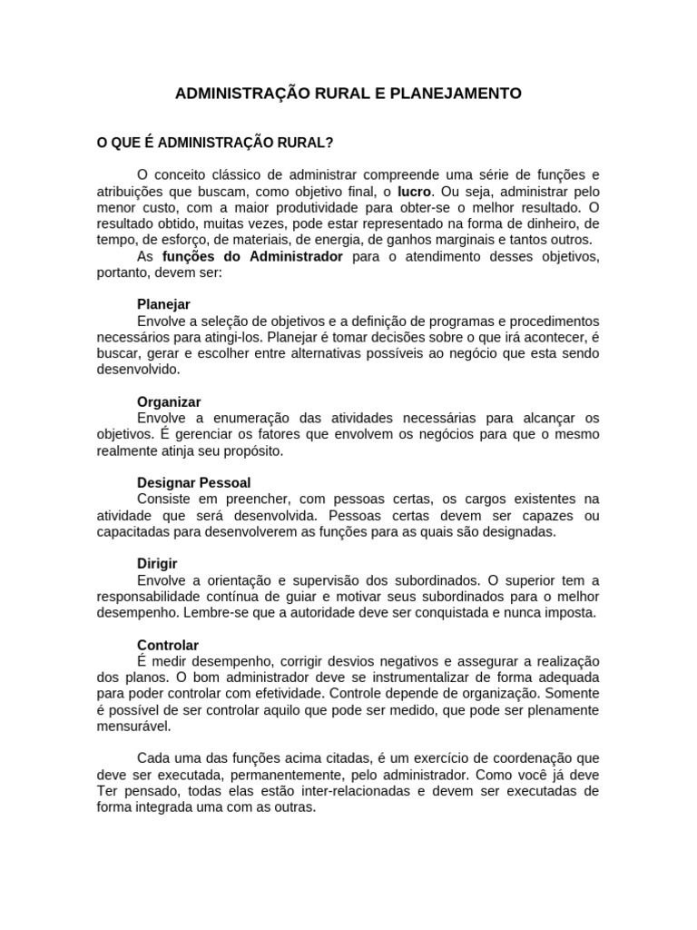 ADMINISTRAÇÃO RURAL E PLANEJAMENTO