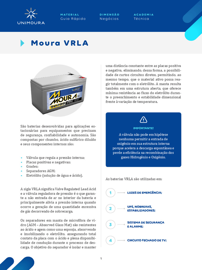 Veja a seguir alguns detalhes de cada modelo de bateria VRLA:
