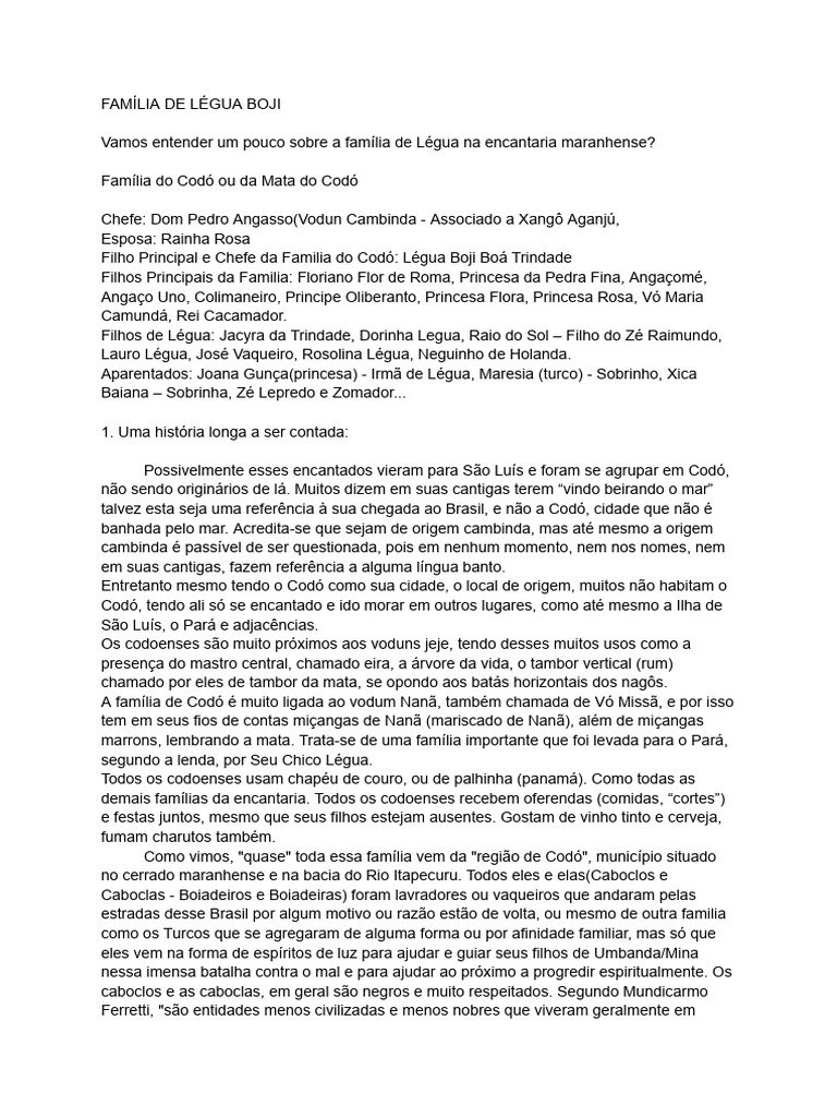 Codó, também conhecida como capital da magia negra. Falar desta entidade, de sua família