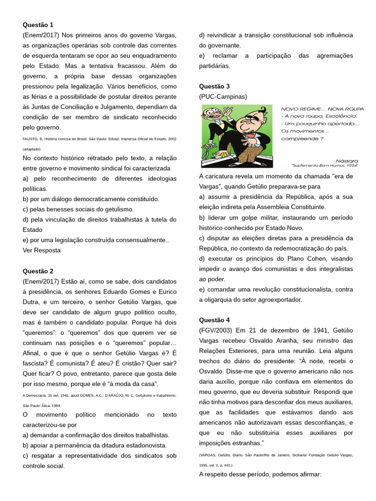 (Enem/2017) Nos primeiros anos do governo Vargas, d) reivindicar a transição constitucional sob influência